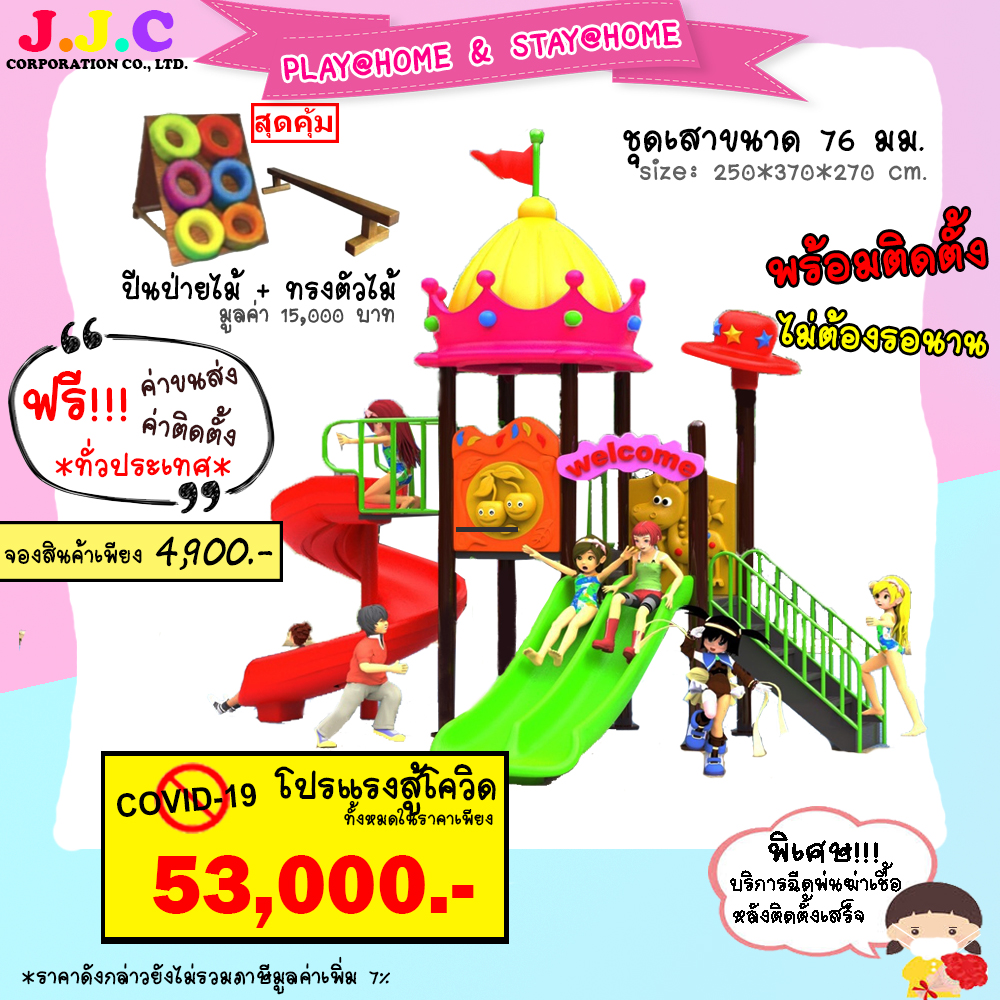 บริษัท เจ.เจ.ซี. คอร์ปอเรชั่น จำกัด เป็นบริษัทนำเข้า จำหน่ายและติดตั้งเครื่องเล่นสนาม, สนามเด็กเล่นทั้งกลางแจ้งและในร่ม เช่น บ้านบอล สวนน้ำ บ้านลม เครื่องออกกำลังกาย ตลอดจนให้คำปรึกษาในการเลือกซื้อเครื่องเล่นให้เหมาะสมกับเด็กๆ ในแต่ละช่วงวัย และเหมาะสมกับการใช้งานที่ราคาถูกที่สุดในประเทศ รับติดตั้งในสถานที่ต่างๆ บริการขนส่งติดตั้วทั่วประเทศ