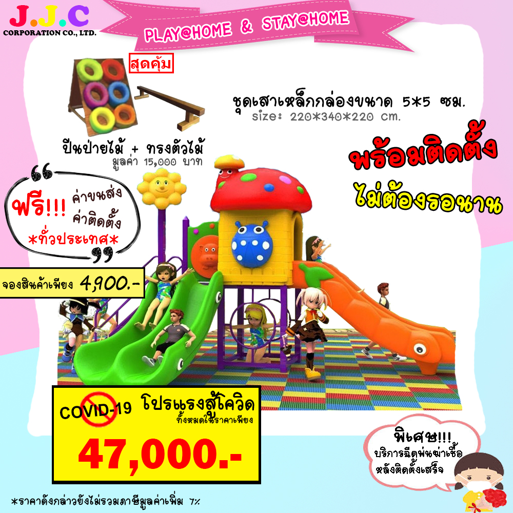 บริษัท เจ.เจ.ซี. คอร์ปอเรชั่น จำกัด เป็นบริษัทนำเข้า จำหน่ายและติดตั้งเครื่องเล่นสนาม, สนามเด็กเล่นทั้งกลางแจ้งและในร่ม เช่น บ้านบอล สวนน้ำ บ้านลม เครื่องออกกำลังกาย ตลอดจนให้คำปรึกษาในการเลือกซื้อเครื่องเล่นให้เหมาะสมกับเด็กๆ ในแต่ละช่วงวัย และเหมาะสมกับการใช้งานที่ราคาถูกที่สุดในประเทศ รับติดตั้งในสถานที่ต่างๆ บริการขนส่งติดตั้วทั่วประเทศ