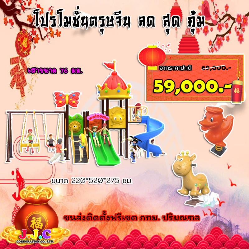 บริษัท เจ.เจ.ซี. คอร์ปอเรชั่น จำกัด เป็นบริษัทนำเข้า จำหน่ายและติดตั้งเครื่องเล่นสนาม, สนามเด็กเล่นทั้งกลางแจ้งและในร่ม เช่น บ้านบอล สวนน้ำ บ้านลม เครื่องออกกำลังกาย ตลอดจนให้คำปรึกษาในการเลือกซื้อเครื่องเล่นให้เหมาะสมกับเด็กๆ ในแต่ละช่วงวัย และเหมาะสมกับการใช้งานที่ราคาถูกที่สุดในประเทศ รับติดตั้งในสถานที่ต่างๆ บริการขนส่งติดตั้วทั่วประเทศ